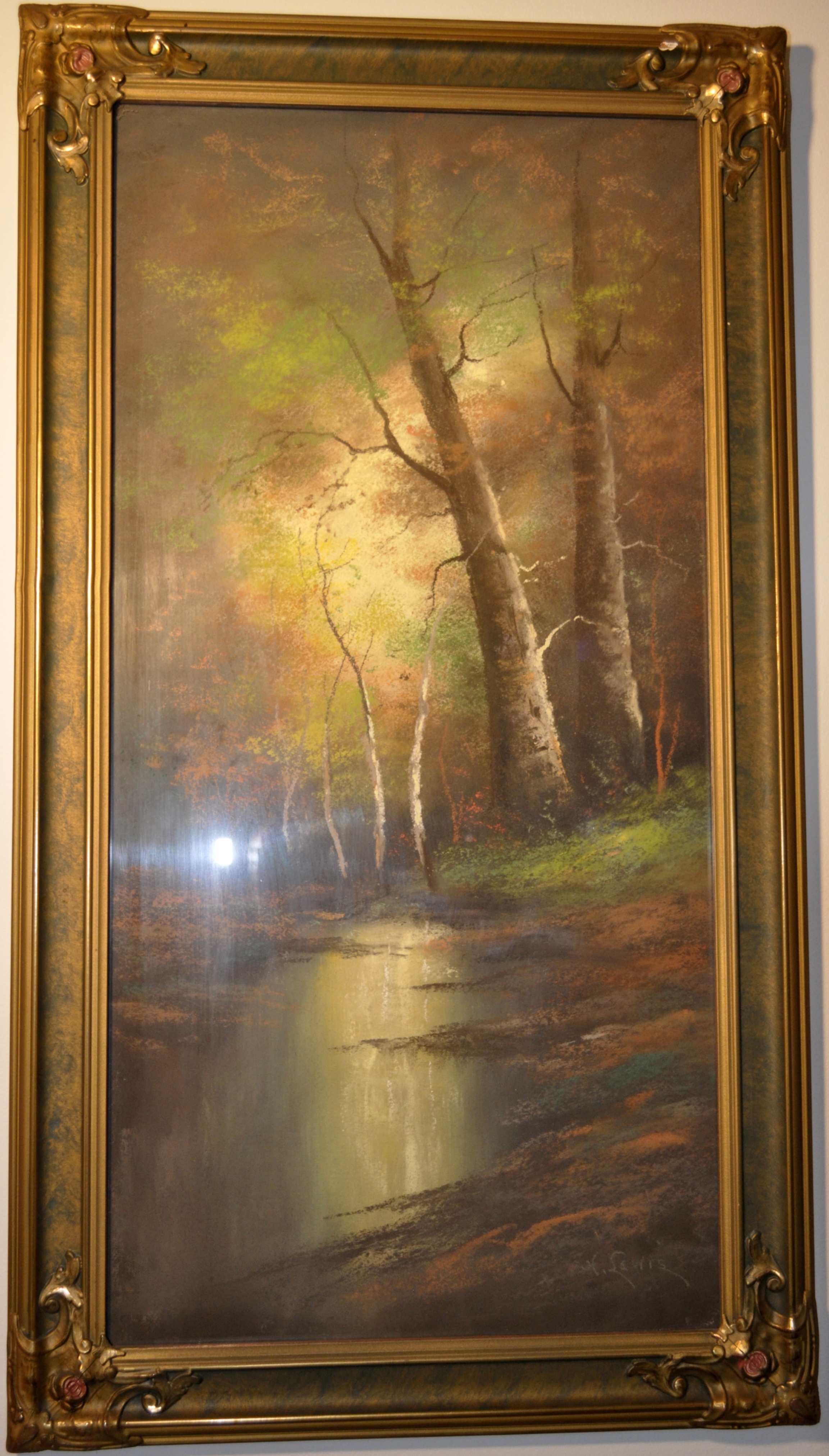 Judy went on to tell me that the Knights had received the pastel as a wedding gift. Since I knew my great grandfather had given several couple paintings as wedding gifts, I wondered if perhaps he had given this to the Knights, since they had lived in a suburb of Pittsburgh, PA. Judy was unable to verify if that was the case. Judy’s father, Clyde Weissert is the current owner of the pastel. The painting was a gift to Mr. Weissert’s family from the Knights.