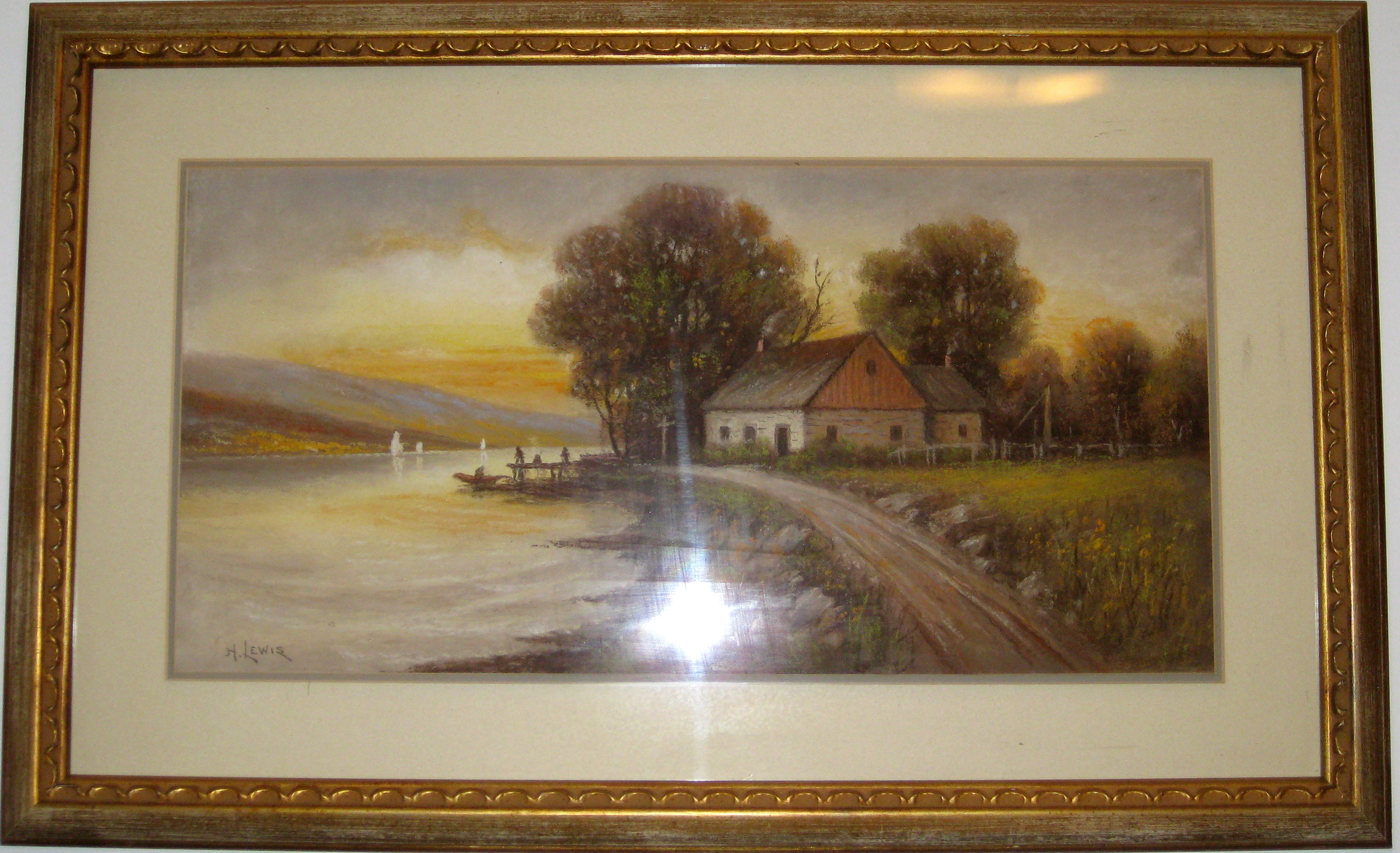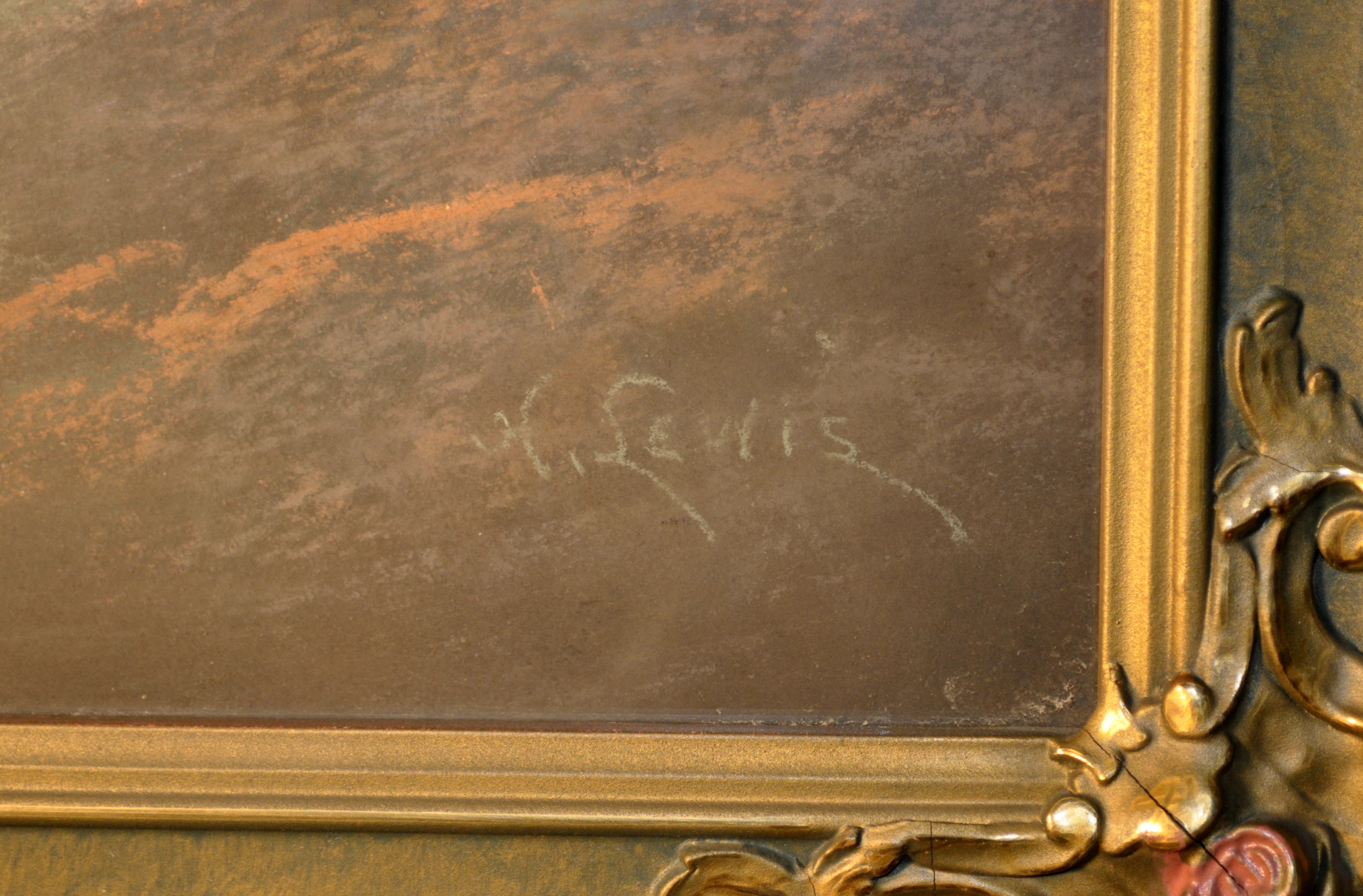 H. R. Lewis signature on Campsite themed pastel circa 1905